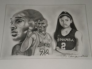 Colored pencil drawing of kobe and gianna bryant.