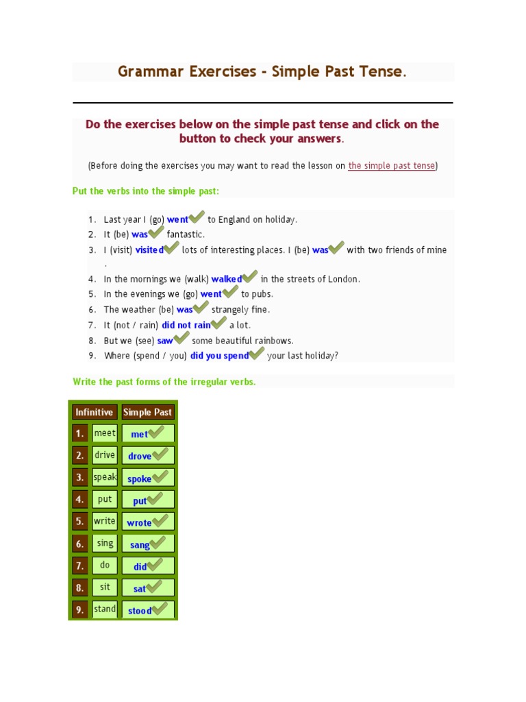 I visited berlin last week. It is the basic form of the past tense in english. Simple past tense is used to express the actions that happened in the past or happened one after the other. Simple past tense (past simple tense) is a verb tense that describes completed actions or past habits.
